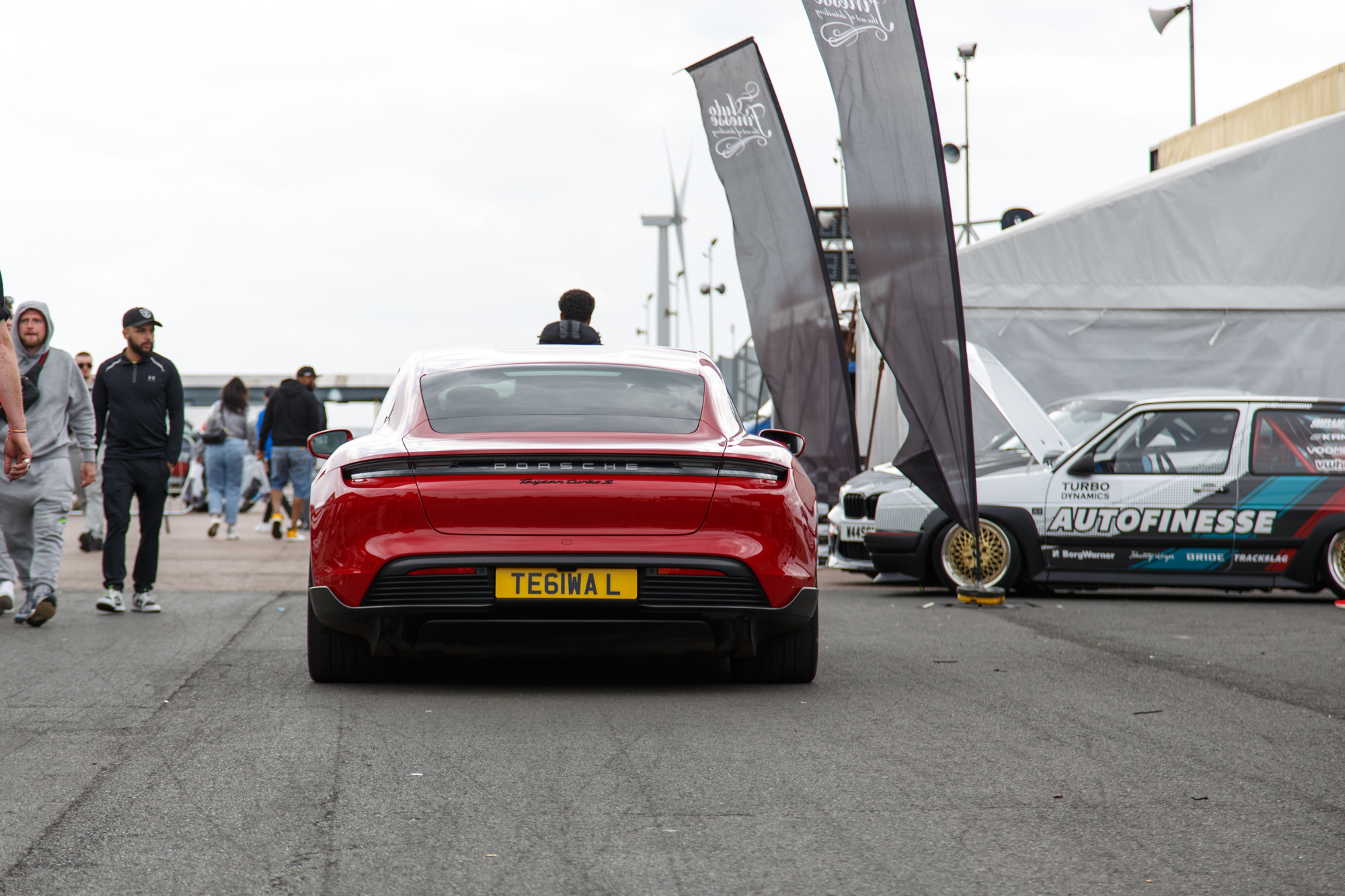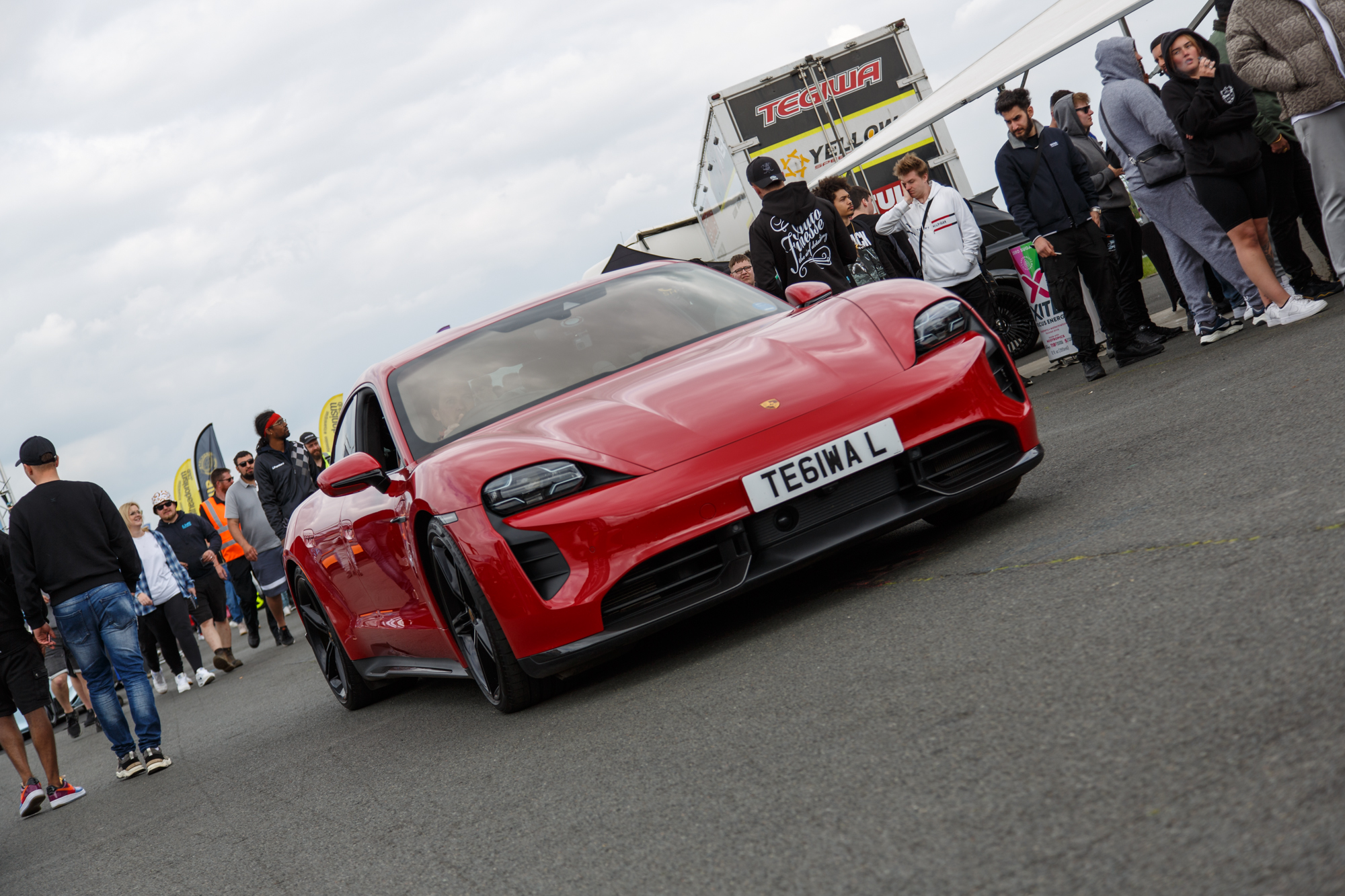 Of course, we couldn’t travel all the way to Santa Pod Raceway and not have a go at any drag racing. Unfortunately, Tsuki wasn’t ready to post any 1/4 times due to some technical issues but Tegiwa director and resident racing driver, Luke Sedzikowski, stepped up to the pass in his Porsche Taycan Turbo S. The electric powered Porsche was obviously greeted to a round of boo’s at it lined up, encouraged by none other than Jamie from Officially Gassed. That didn’t deter look decimating his opponents though. With 4 passes driven throughout the day and a best time of 10.6 seconds, Luke was buzzing that he’d got himself a 10 second car!