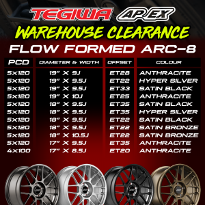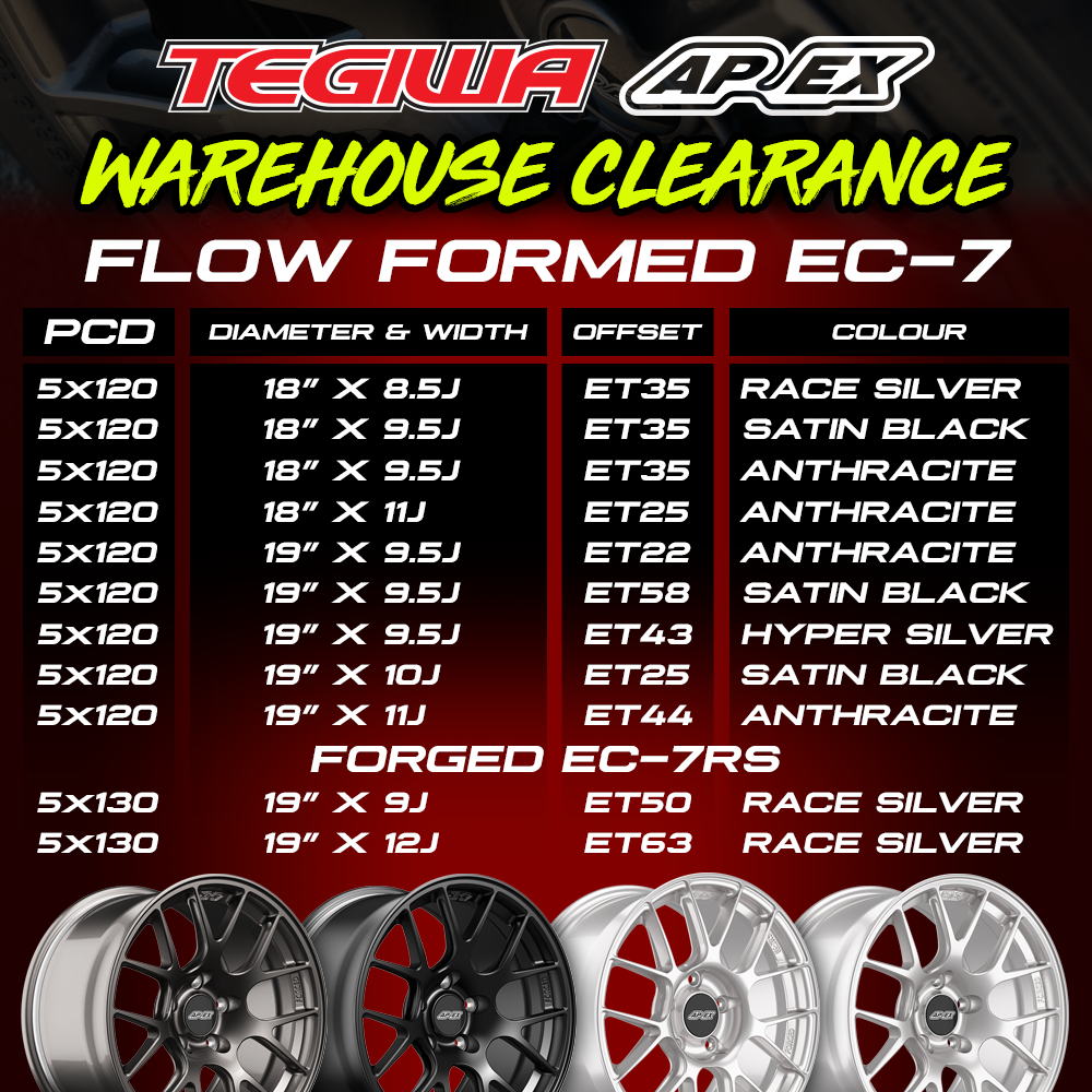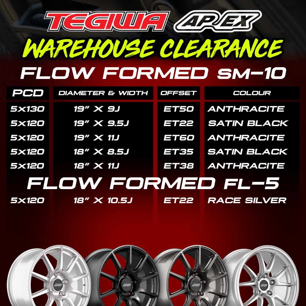 Just a couple of days ago we dropped our warehouse clearance sale on Apex Wheels. We’re currently offering 10% off all in stock Apex wheels whilst stocks last. This is the perfect time to grab a bargain; check them out here.