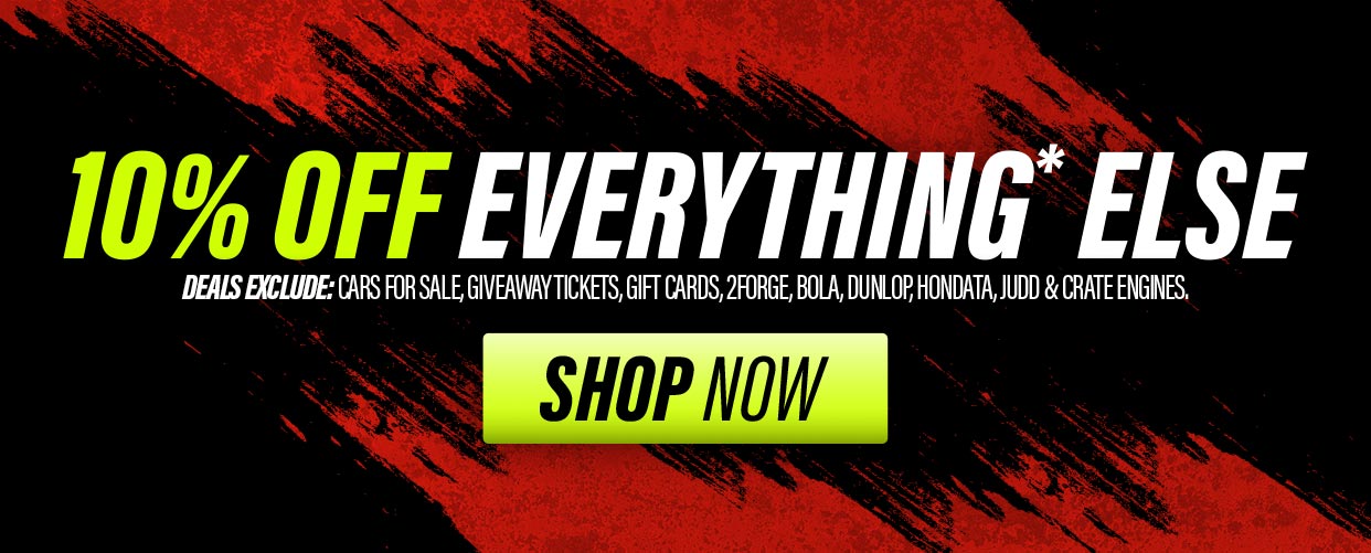 15% OFF: Apex, BG Racing, CANchecked, Cobra, Comp Clutch, Coolerworx, Forge, Haltech, Hardrace, Innovative, HKS, Infinity Design, Konig, MFactory, SuperPro, Takata, Tegiwa, Tein, Turbosmart, WedsSport, Yokohama A052 (In Stock Only).