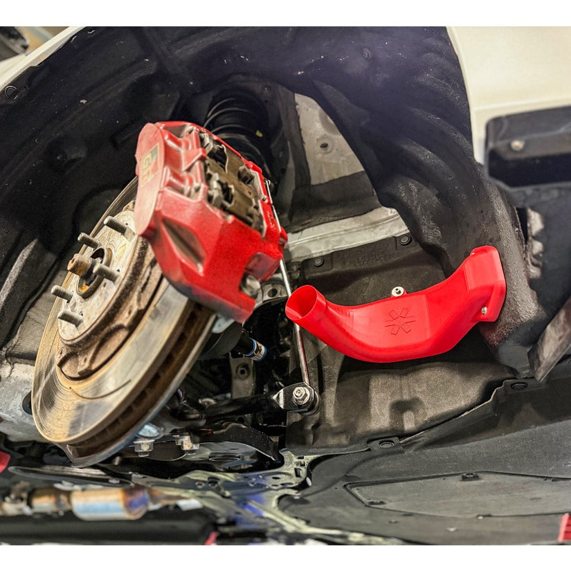 Our ducts are designed to work on a Circuit Pack car and will fit with most combinations of aftermarket wheel and larger tyres up to 9.5×18 and a 255/35/18 Nankang AR1 track tyre, even on moderately lowered suspension.