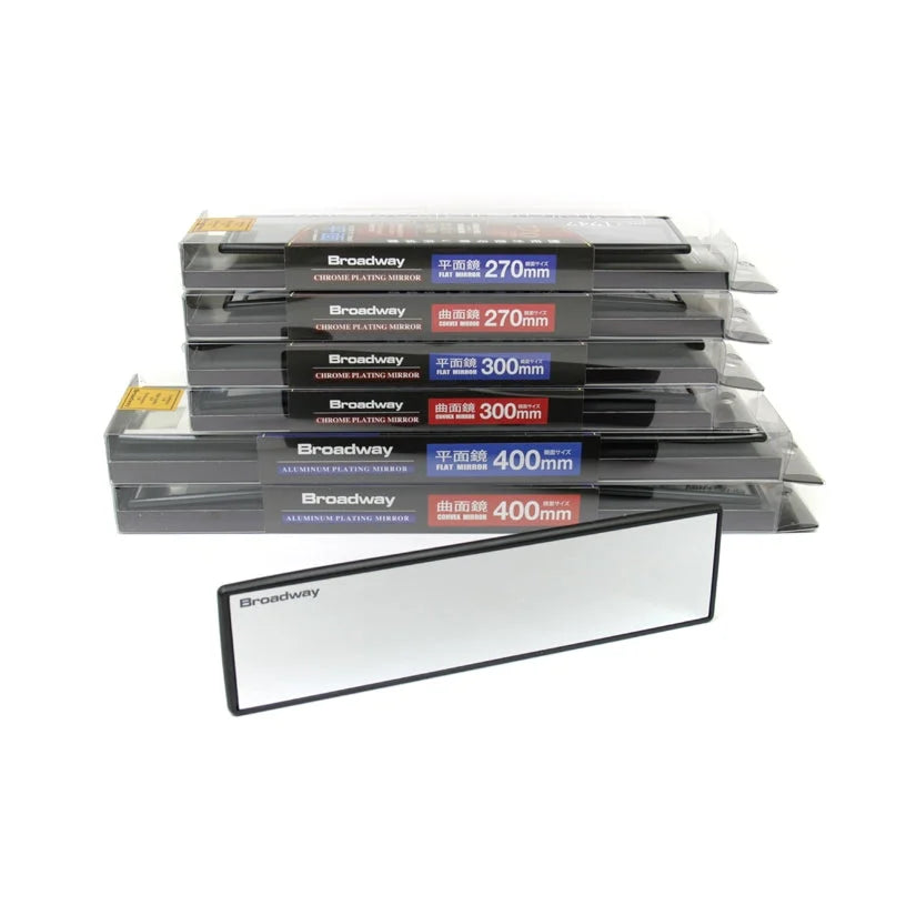 BROADWAY Rear View Mirrors. The ultimate genuine JDM accessory. If you need better vision then look no further, these wide mirrors offer much improved rear visibility. TEGIWA are now the official UK distributor for NAPOLEX Japan (Broadway). We carry in stock the popular sizes - 270mm, 300mm, and super wide 400mm. The mirrors are available in both a FLAT or CONVEX shape. Fitment is very easy as they simply clip onto your existing rear view mirror and takes less than one minute.