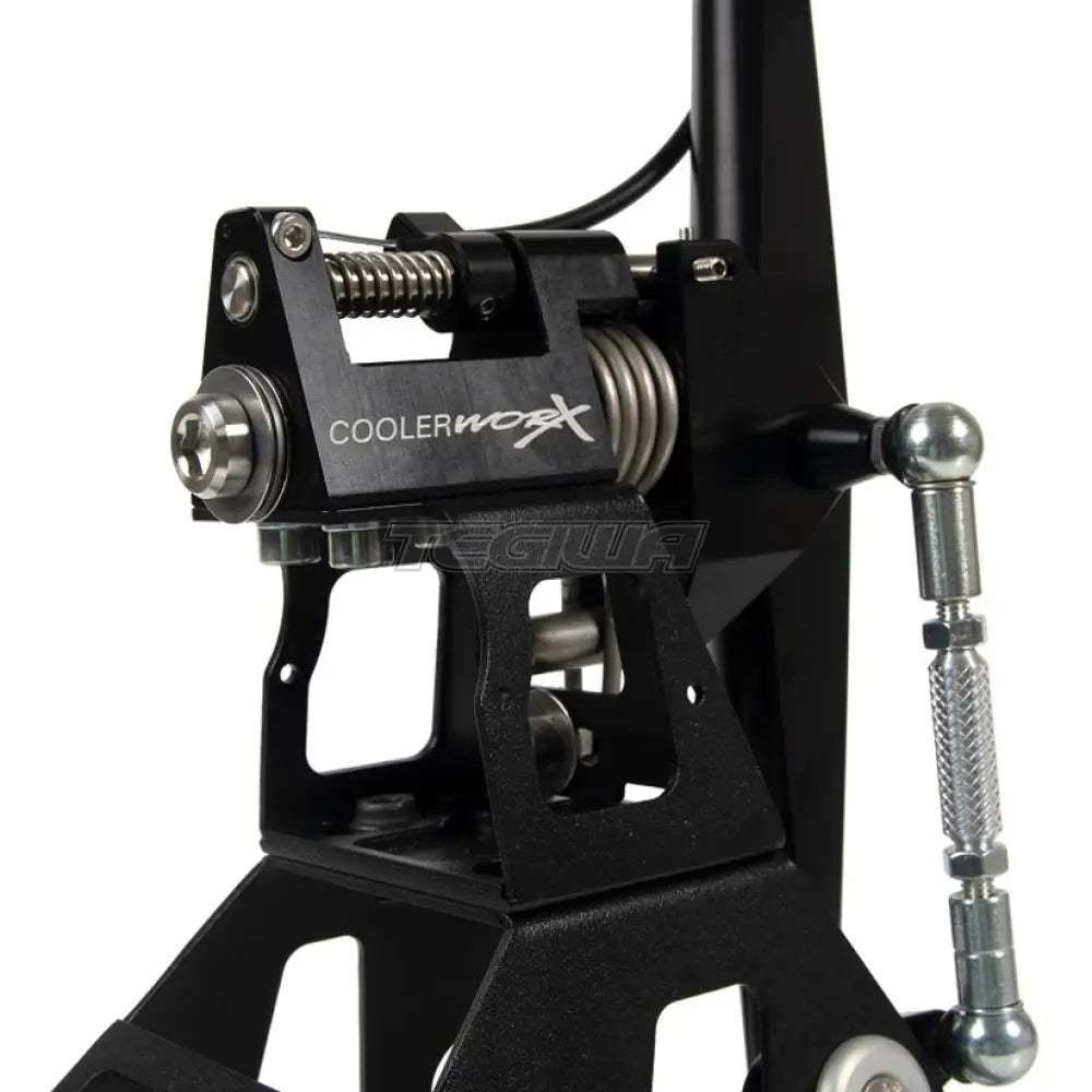 The hand-assembled Coolerworx short throw shifter can replace OEM gear shifter in order to achieve quicker and more ergonomic change of gears. A precisely operating shifter is designed so that it can be fitted to all standard gearboxes. Our shifters are made from aircraft quality aluminium and teflon bearings. Its metal parts are anodized to protect from corrosion and depreciation. Our shifter follows standard H pattern and has has lockable gears preventing reverse from accidental engagement. In order to match a new gear shifter to the car compartment you can choose the desired colour of the gear shifter and its handle.