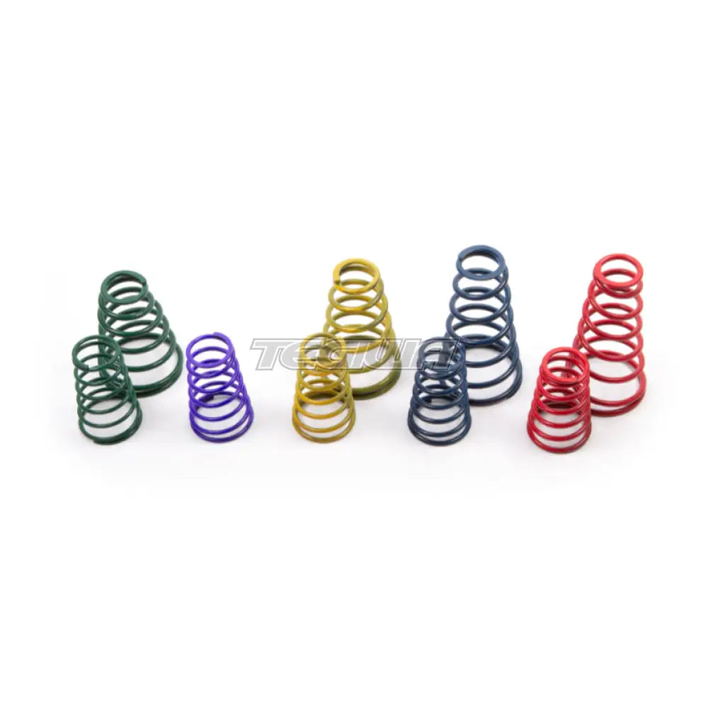 Now you can fine tune your turbo actuator to the exact needs of your engine with this complete tuning kit. In your actuator tuning kit, you will find four or five springs (dependent on your actuator) and the associated spring retainer. The strongest spring is the red, followed by the blue, yellow and finally the green which is the weakest.