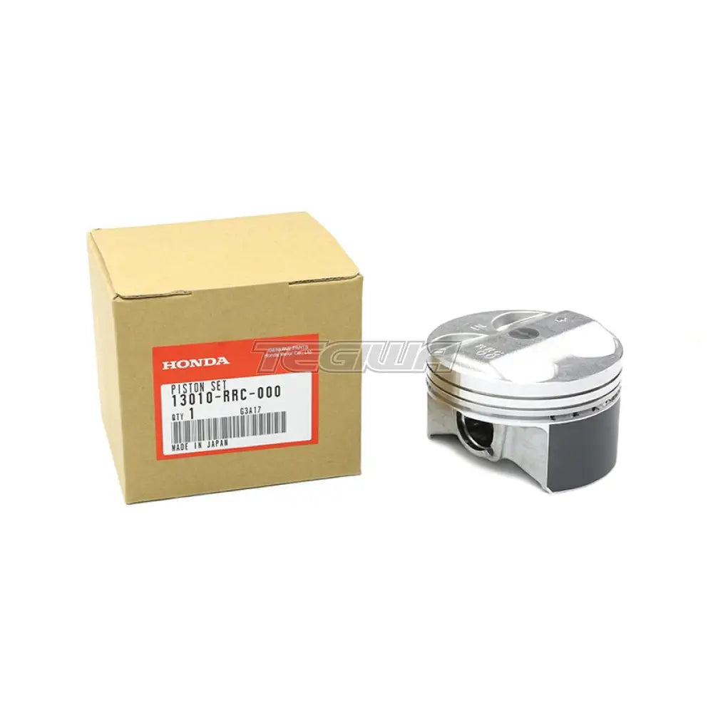 Genuine Honda FD2 piston set. Perfect for naturally aspirated all-motor applications. These Civic FD2 Type R RRC pistons are of a high-pressure die cast construction. It has a black dry molybdenum film lubricant coating on the skirts for longer wear and less friction, as well as additional oil holes in the ring grooves for better high rpm oil control. These pistons also have holes in the wrist pin bosses to improve wrist pin oiling. When installing these pistons care must be taken to ensure the correct final compression ratio is achieved and that no interference will occur. Complete with new wrist pins. Sold in a set of 4.