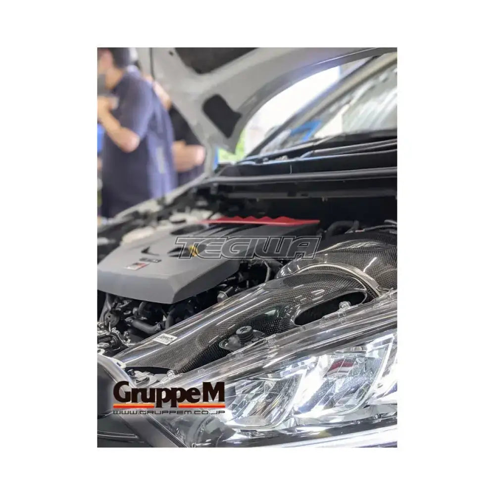 This beautifully crafted high capacity RAM AIR SYSTEM makes full use of the engine bay drawing in the greatest amount of ambient air available. The carbon fiber filter case prevents heated air from entering intake stream lowering intake temperature increasing horsepower and torque throughout the power band. Delivering a sharp, crisp boost in performance revealing a truly sporty sound at high rpm.