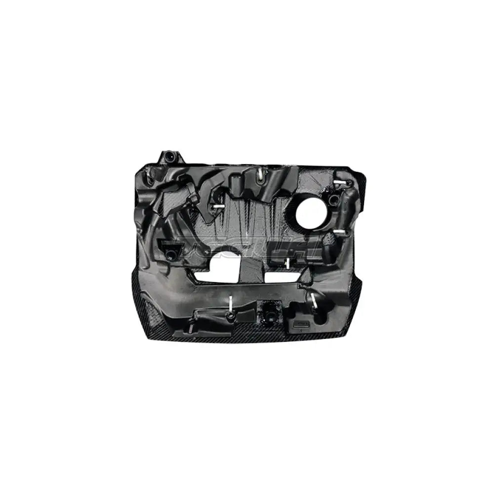 The HKS engine cover is shaped to improve the rectification effect in the engine room compared to the genuine engine cover.