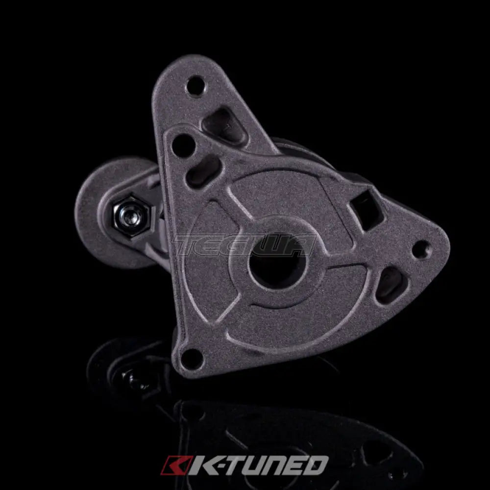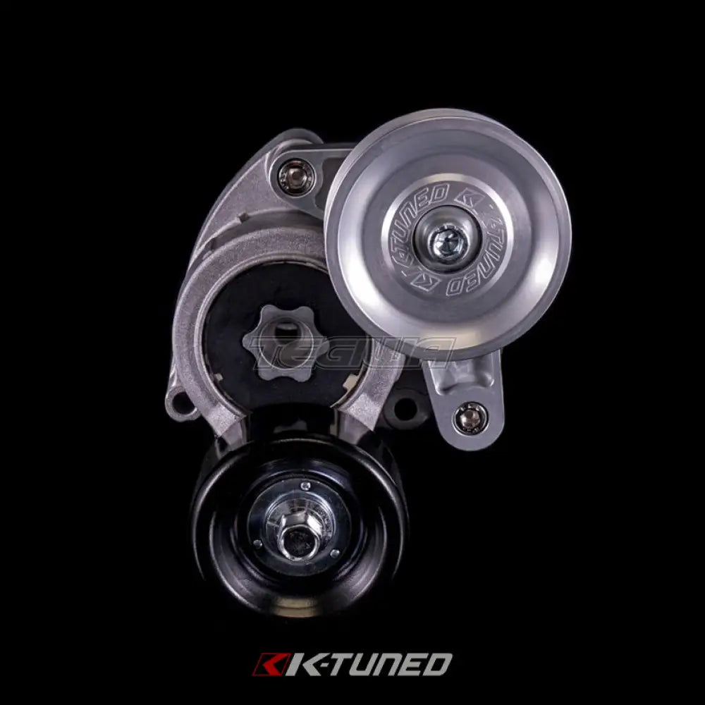 The auto tensioner is replacement for the OEM unit. It mounts on the water pump and is designed to ensure proper belt tension at all times. Using a 14mm wrench (double wrenching can help with leverage) you can remove tension to install and remove the belt. Ensure that the arrow on the top side is lined up with the window, this is proper adjustment and pressure.