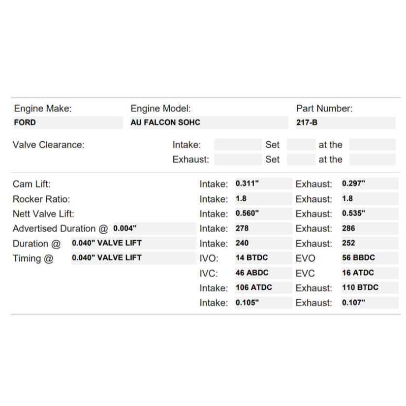 Kelford Cams 216/227 Race/Fast Road Cam Ford Falcon AU Performance