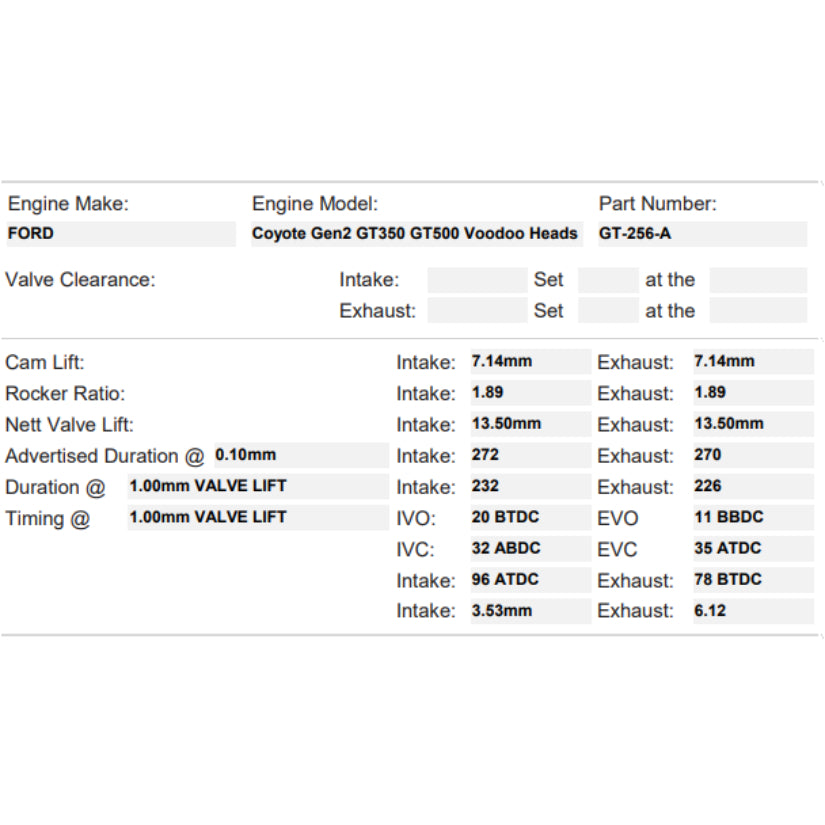 Stage 2 – Ford GT350 / GT500 (Coyote Firing Order) NA Camshafts (ITB Compatible, 9200 RPM)