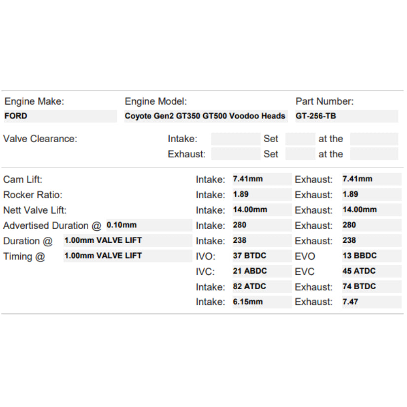 The Kelford Cams Stage 2 Turbo camshafts for the Ford Coyote GT350 and GT500 are engineered for serious racers pushing 1400 to 2000 horsepower with twin 62mm to 72mm turbochargers. Designed for cars running mid 7 to low 8-second quarter-mile passes, these cams deliver exceptional midrange torque and hold strong power all the way to 9200 RPM. Optimized for drag racing applications, Stage 2 cams are designed to fully utilize the variable cam timing system, offering precise control and a broader tuning window. These camshafts must be paired with aftermarket pistons featuring deep valve relief pockets to ensure proper clearance at high RPM and boost levels. A valve spring upgrade is required, and Kelford recommends the KVS255 spring kit for reliable valve control under extreme performance demands. These GT350 / GT500 turbo cams provide the serious power and control needed to dominate the 1/4 mile.