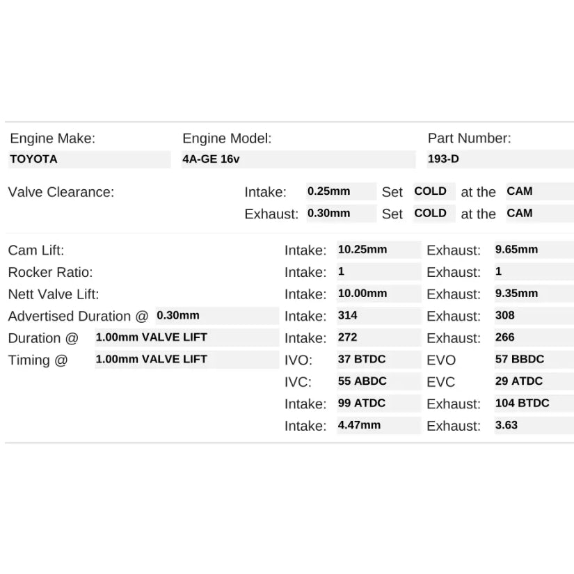 Performance camshafts for Naturally Aspirated Naturally Aspirated racing engines with high compression, ported cylinder head and well designed intake and exhaust system. More top end power than the 193-C cam, pulling to around 10k rpm depending on engine. Ideal for lightweight chassis such as single seater or sports car to help get the engine into the power band more easily. Kelford Cams recommends KVS101-BT valve spring.