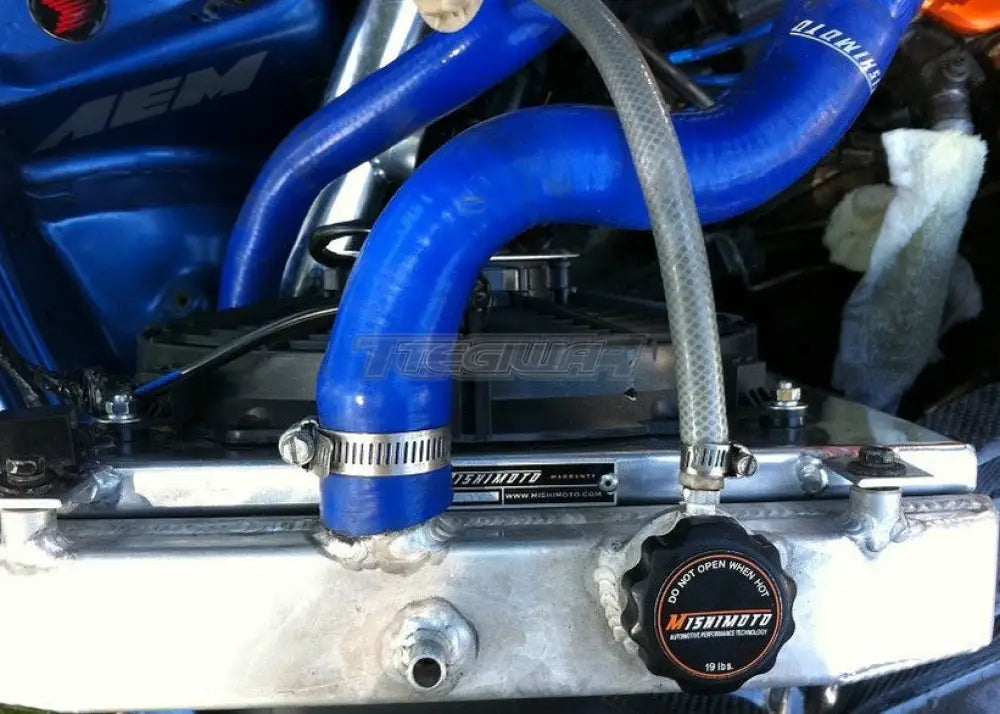 Whether you drive a stock EG or a boosted EK, coolant temperatures are key to a reliable, efficient engine. The Mishimoto Honda Civic Performance Aluminum Radiator is an ideal upgrade for achieving optimal coolant temperatures on and off the track. This radiator is precision engineered to retain factory fitment for a painless installation. To provide additional cooling efficiency this radiator is constructed using a 100-percent brazed aluminum core with TIG-welded aluminum end tanks for superior heat dissipation, reliability, and strength. Turbocharged, high-powered, naturally aspirated applications can produce substantial under-hood temperatures that can accelerate wear or cause engine damage if not properly regulated. Protect your investment with the Mishimoto Honda Civic Performance Aluminum Radiator. This performance radiator includes a high-pressure 1.3 bar radiator cap that effectively raises the boiling point of coolant to create a safer and more efficient system. The Mishimoto Honda Civic aluminum radiator features an efficient dual-core design, which provides maximum cooling while maintaining a compact size, making this the perfect radiator for custom applications. Whether you need to replace that leaking factory radiator or provide additional cooling for your track car, the Mishimoto Honda Civic aluminum radiator is an ideal upgrade. As with all our products, this radiator includes the Mishimoto Lifetime Warranty.
