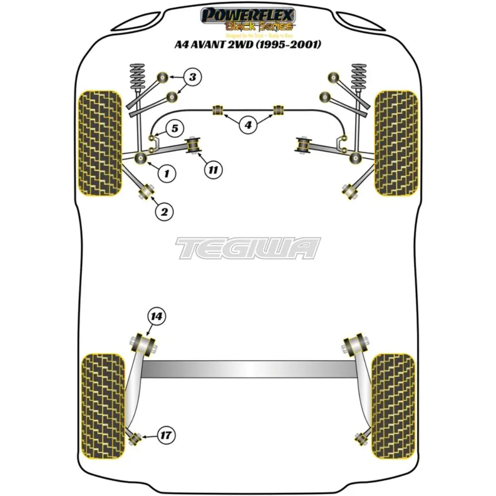 Powerflex Front Upper Control Arm Bush Audi A4 S4 RS4 B5 Avant 2WD 95-01Fitting InstructionsOEM Part No: 4B0407515 / 4D0407515C / 4E0407515D / 4H0407515B, 4E0407509 / 4E0 407 509 / 4E0407510 / 4E0 407 510, 8K0407515 / 8D0407515C