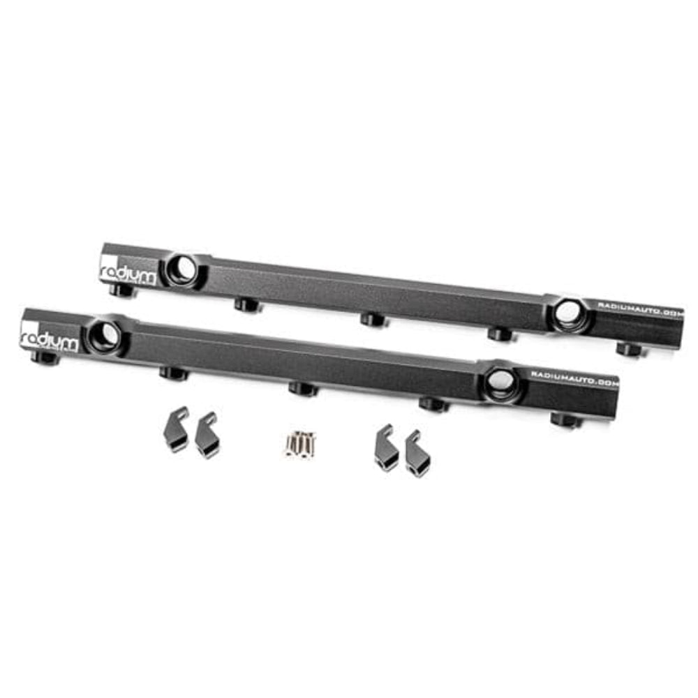 Manufactured with very large .069" internal bores, the fuel rails can support all necessary engine power requirements. They are CNC machined from 6061 aluminum, anodized, and laser etched for a high quality surface finish. Each fuel rail has six 8AN ORB ports (12 in total). Like the OEM fuel rails, the injector bores are 14mm ID so factory injectors, or any equivalent aftermarket injector, can be used. As shown below, the factory injector retaining clips can be reused. 20-0866 only includes the fuel rails and the mounting hardware, making it ideal for custom application COMPATIBILITYAudi R8 Gen2 Type4SLamborghini Huracan LP580-2Lamborghini Huracan LP610-4Lamborghini Huracan LP640-4Lamborghini Huracan EVOLamborghini Huracan STOLamborghini Huracan Tecnica
