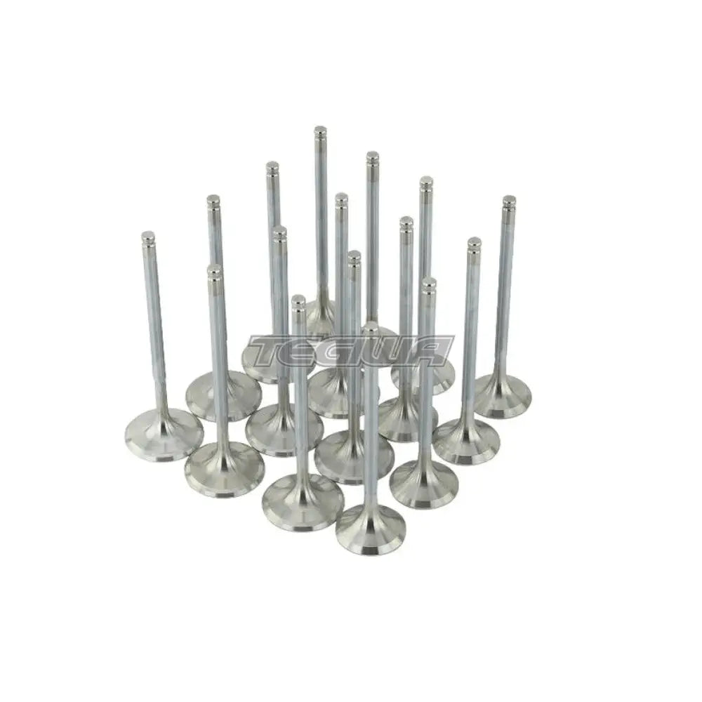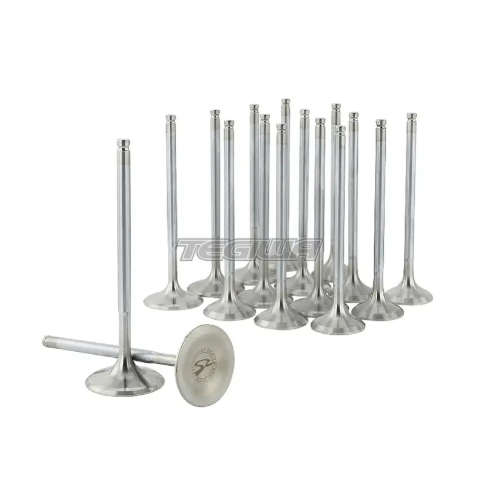 Skunk2 Alpha Series Valves for the Honda B16, B17, and B18 VTEC engines are manufactured from HNV-3 martensitic steel (IN) and EV8 austenitic steel (EX) one-piece forgings. Each valve is heat-treated using a proprietary process for extraordinary strength and durability and then hard chrome plated to further increase strength, significantly reduce friction, and increase corrosion resistance.