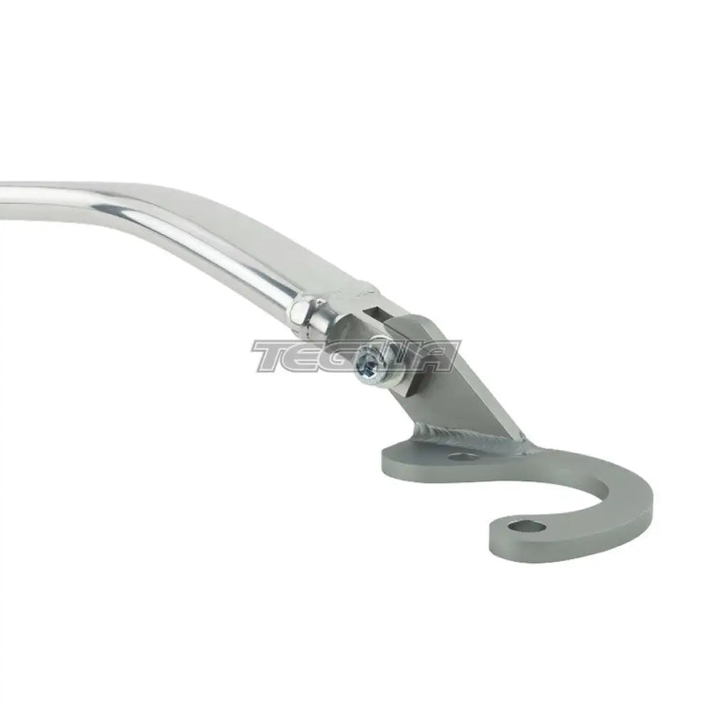 Skunk2’s Black Series Front Strut Tower Bar for the 88-00 Civic, 93-97 del Sol, and 90-01 Integra ties the vehicle’s upper suspension points at its shock towers for ultimate chassis strength and rigidity for improved handling performance.
