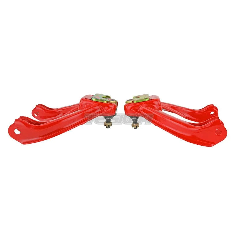 Skunk2 designed the Pro Series Front Camber Kit for the 90-93 Integra with specially engineered A-arms and ball joints that allow for maximum positive camber adjustment in a low-profile design. Enthusiasts who are serious about performance can now correct almost all abnormal tire wear due to negative camber and increase high-speed stability. Each Pro Series Camber Kit includes Skunk2’s all-new, one-piece, forged Pro Series Ball Joints, which feature low-profile top plates for additional clearance between themselves and the shock towers, higher clamping loads for no-slip performance, and a unique design that allows for maximum adjustability.
