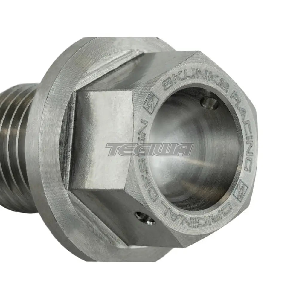 Skunk2 takes magnetic drain plugs to the next level using high quality CNC Machined Titanium! This kit fits Hondas and Acuras with a M14 x 1.5 drain bolt pattern and includes one engine oil pan drain plug and one transmission oil drain plug. May fit other applications with matching bolt patterns.