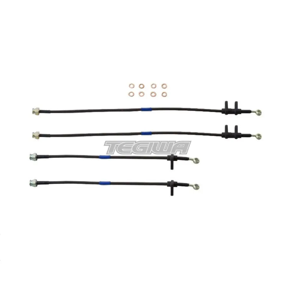 Spoon Sports Brake Hoses feature a No. 3 Teflon tube with a low expansion ratio in combination with a covering stainless-steel mesh, and through its implementation, it is possible to achieve braking which feels more direct and responsive.
