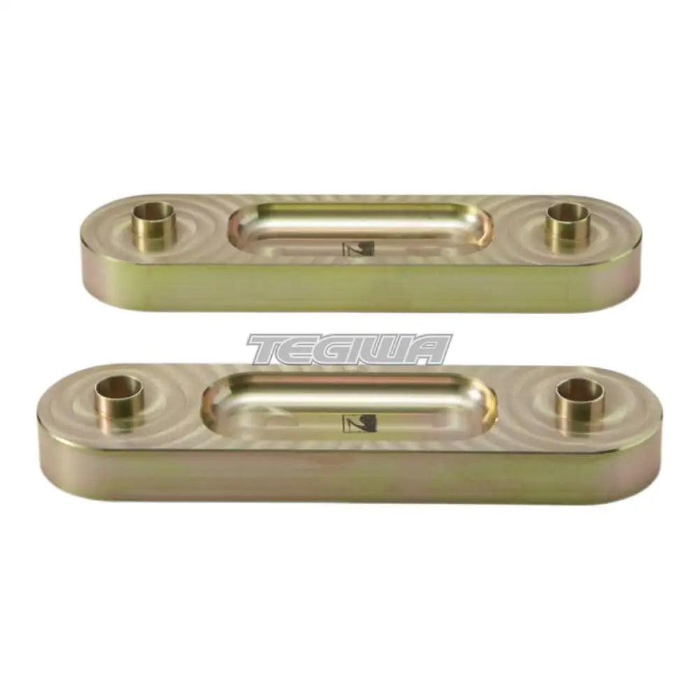 When the vehicle is lowered, suspension geometry deteriorates and the suspension does not travel properly. The bump steer kit corrects suspension geometry for more predictable handling during cornering. Corrects the position of the steering rack to compensate for lowered ride height. The material is alumite A6063 processed for improved corrosion resistance.