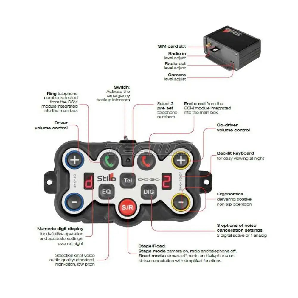 The Stilo DG-30 rally intercom is the world's first 'Active Digital' professional intercom system that's been used by the WRC Champion rally teams for the past few years. This next generation of Stilo's digital intercoms offers a dramatic step forward with its active digital noise cancelling.