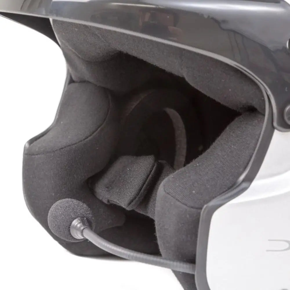 With the fitted metal spiral microphone boom, it has a stable mounting to make sure the microphone does not move on a bumpy and rough road surface at speed. This model does not have the padded earcups as fitted in the more expensive models but has a sponge cup for extra comfort and benefits the speaker position against your ear.