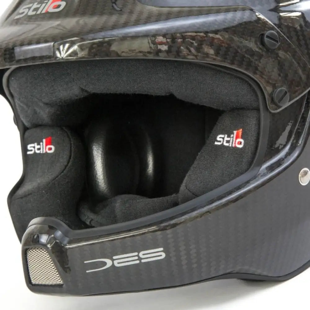 The helmet comes fitted with Stilo's renowned WRC electronics with padded earmuffs for the ultimate in noise cancelling and sound quality. The integrated comm port has been moved slightly forward which now allows easier access while connecting the intercom and more clearance from the fitted HANS post.