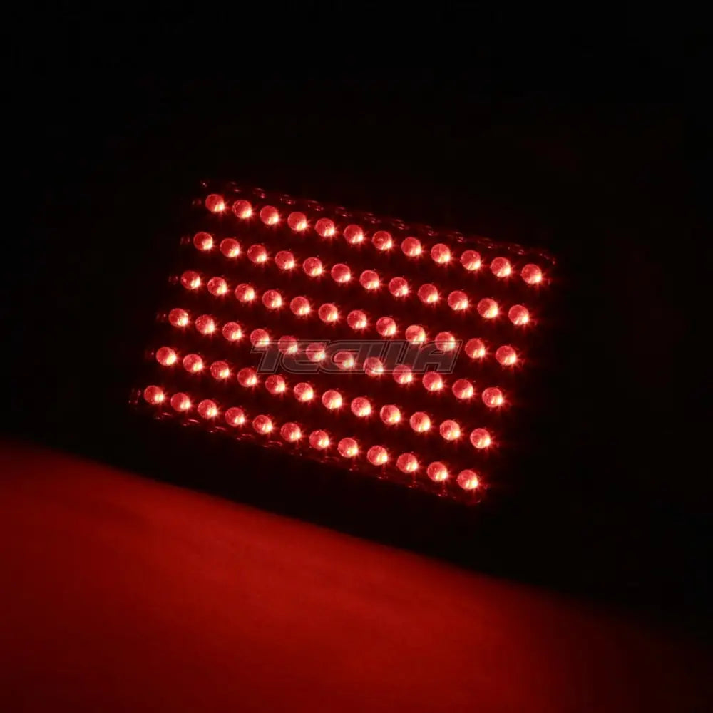 TEGIWA FIA/MSA Rain light has 72 ultra bright LEDs. The unit measures 65mm X 105mm X 19mm and can be mounted horizontally or vertically. The unit has 2 M5 threads built in so you can securely mount it.
