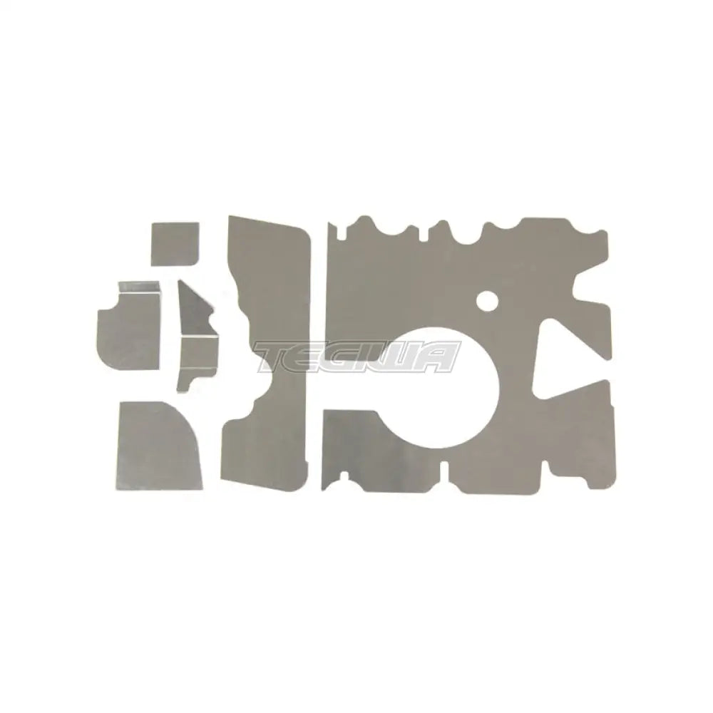 TEGIWA Sump Baffle Kit. Manufactured in the UK from 2mm aluminium plate, this kit is perfect for those who regularly 'track' their car or just want peace of mind when on the road. Oil starvation happens during hard cornering and heavy braking and is particularly common problem on track. This baffle prevents oil surges due to oil shifting caused by centrifugal forces. The kit contains 6 laser-cut aluminium pieces formed to the necessary shapes to fit your original oil sump. After all the baffle pieces are test fitted into the sump, everything should be welded in permanently by a professional. Suitable for Civic FN2 K20Z engine.