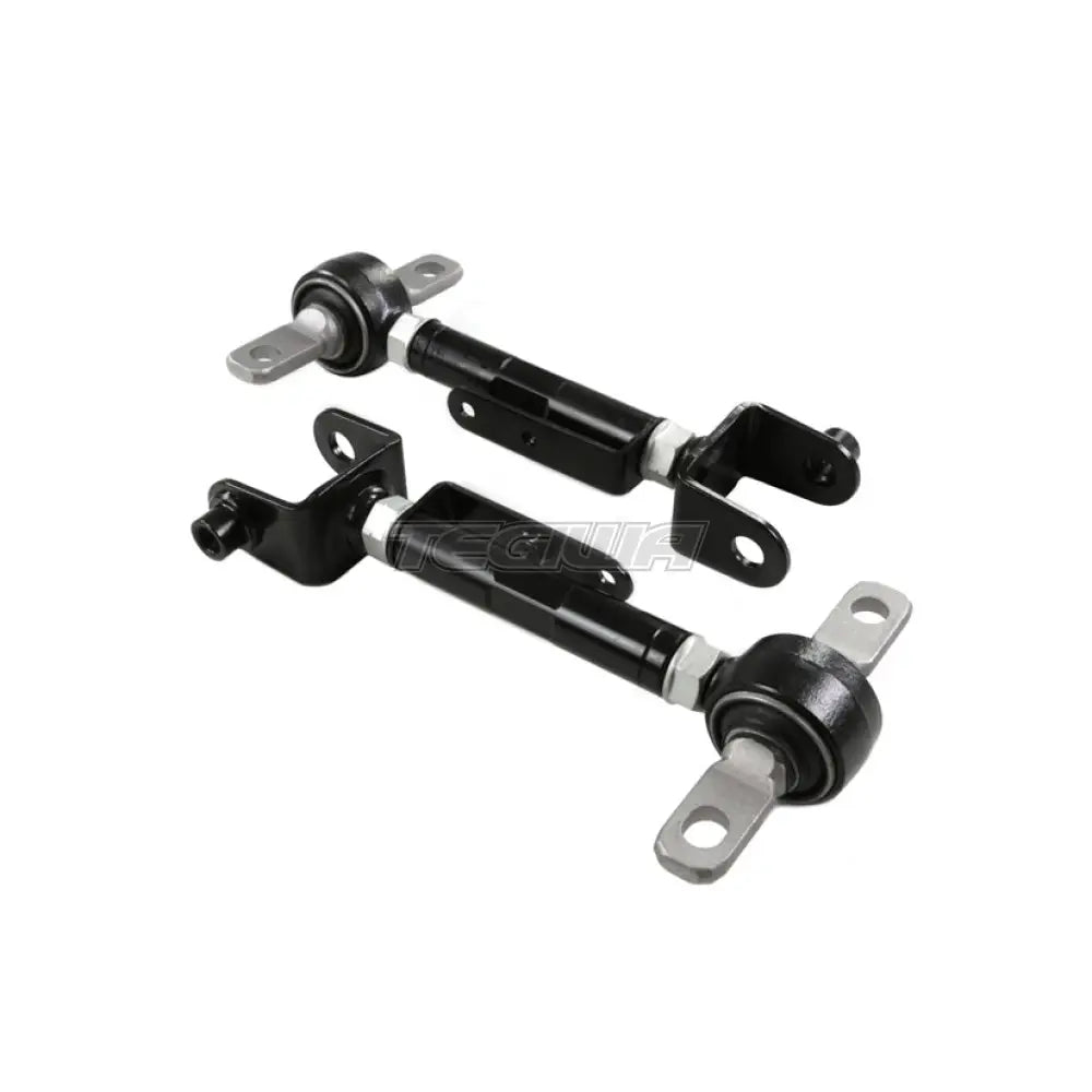 TEGIWA Adjustable Camber Arms. These can be dialed in for the proper amount of toe, caster, and camber depending on vehicle usage. Made of strong steel then coated black for improved appearance and corrosion resistance. Our suspension arms offer endless amount of adjustability and is a must for all track vehicles they offer a perfect solution for proper alignment and to decrease tire wear. These are come complete with a captive nut and line brackets for a smooth hassle-free installation. Suitable for Civic EP3 and Integra DC5 Type R.