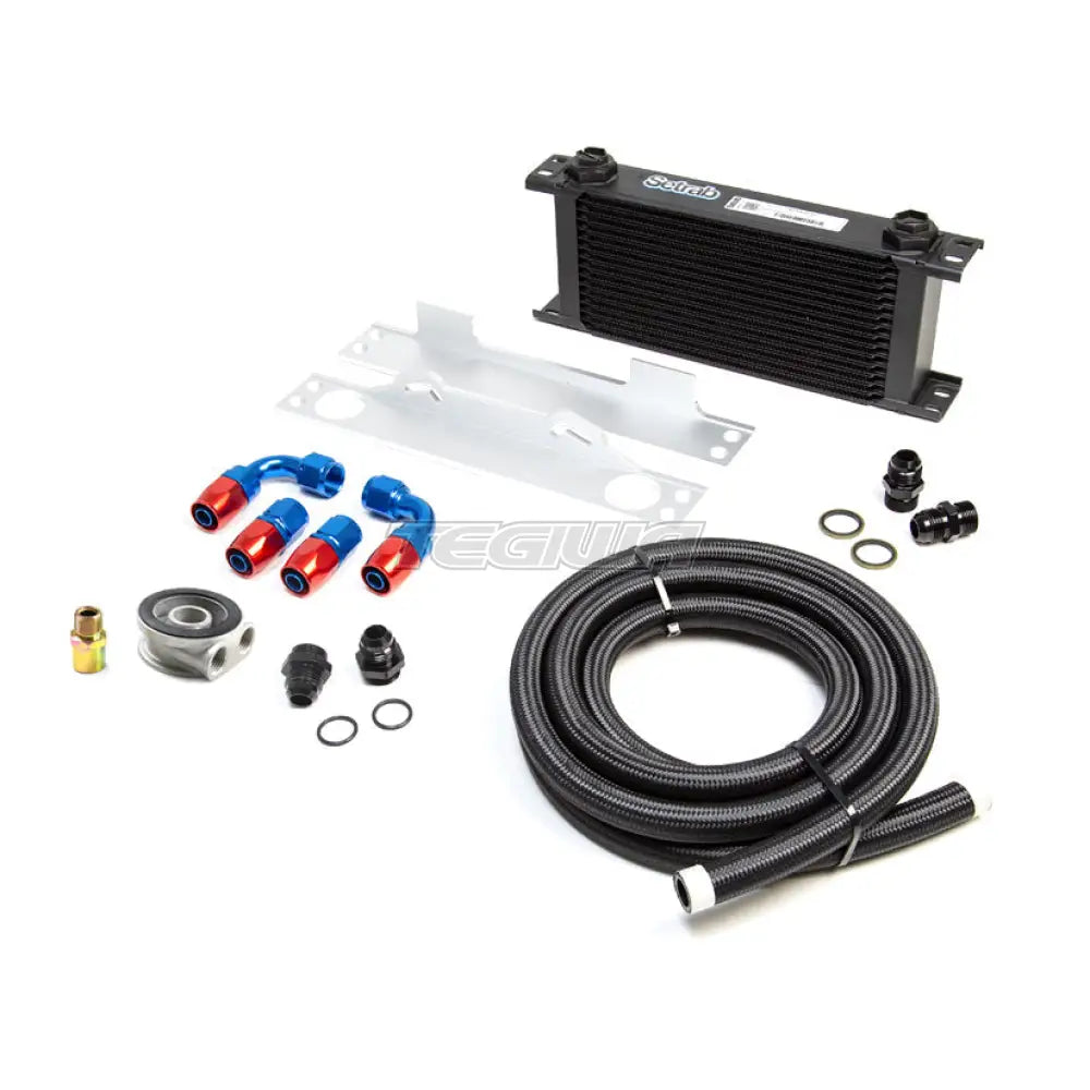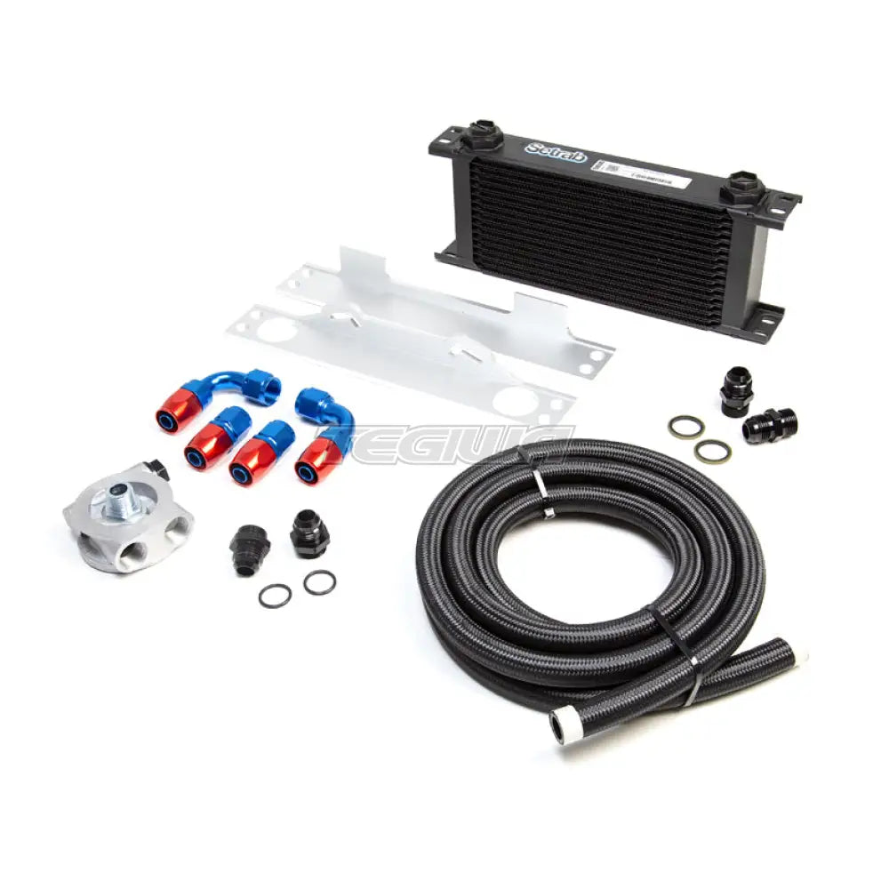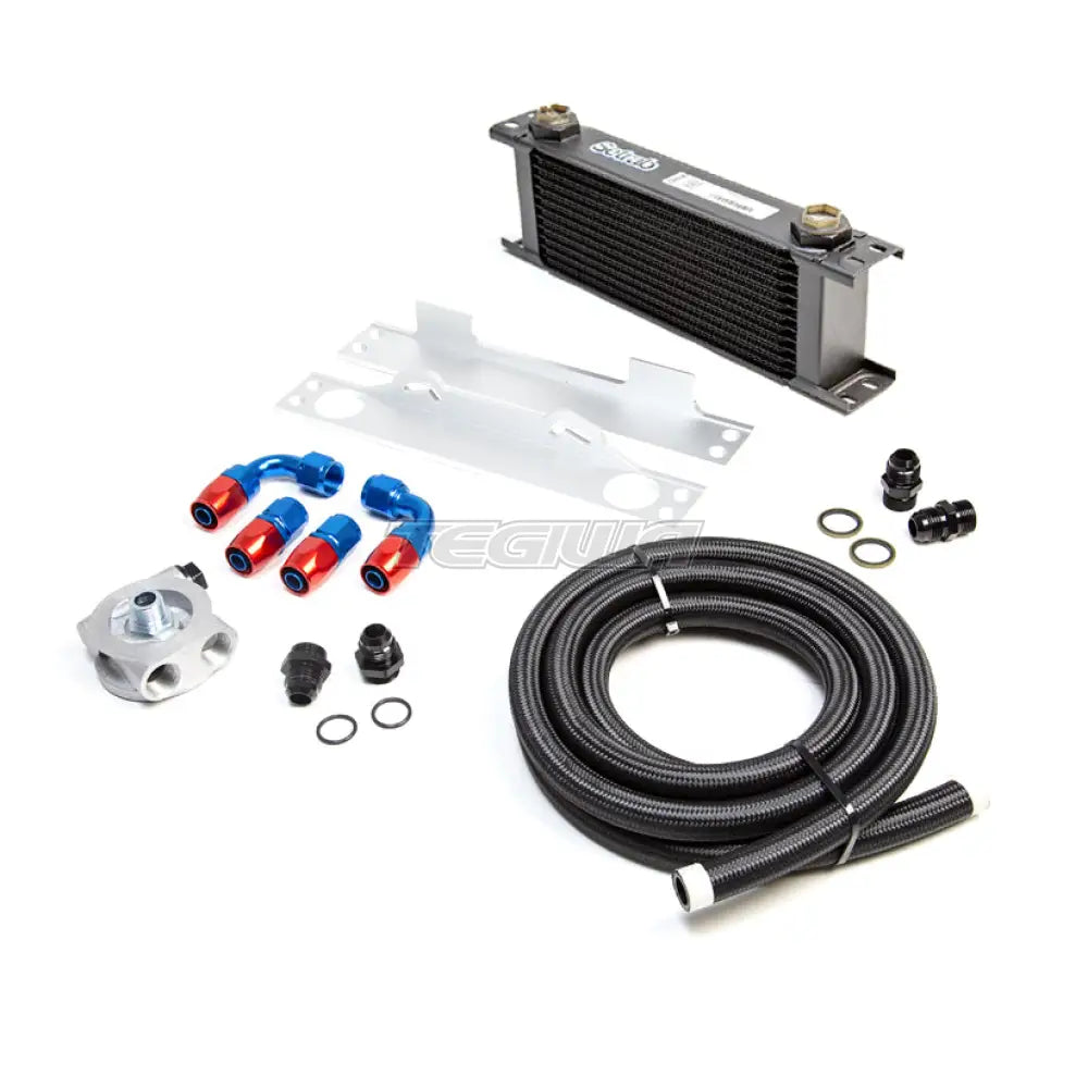 TEGIWA Oil Cooler kit. Features only the best quality parts. Coolers are either Setrab or Mocal (depending on stock) and sandwich plates are manufactured by Mocal, the universal fitting kit is manufactured right here in the UK and it comes complete with high quality AN fittings and braided hose. They are available with either a normal sandwich plate or a thermostatic sandwich plate. Choose from 13, 16, 19 and a 25 row kit. The kit is a universal fitment, but with the fitting kit it should be easy to mount on all cars.