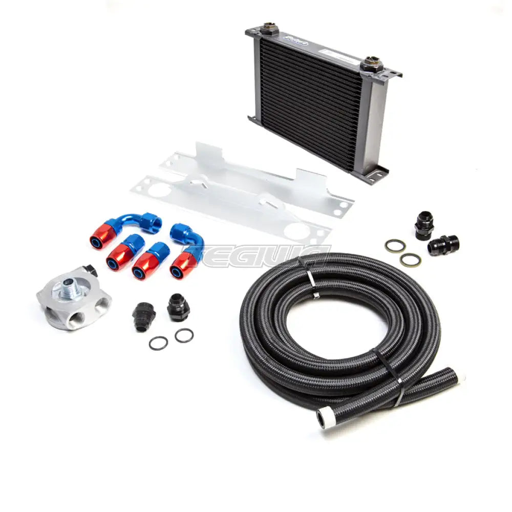 TEGIWA Oil Cooler kit. Features only the best quality parts. Coolers are either Setrab or Mocal (depending on stock) and sandwich plates are manufactured by Mocal, the universal fitting kit is manufactured right here in the UK and it comes complete with high quality AN fittings and braided hose. They are available with either a normal sandwich plate or a thermostatic sandwich plate. Choose from 13, 16, 19 and a 25 row kit. The kit is a universal fitment, but with the fitting kit it should be easy to mount on all cars.