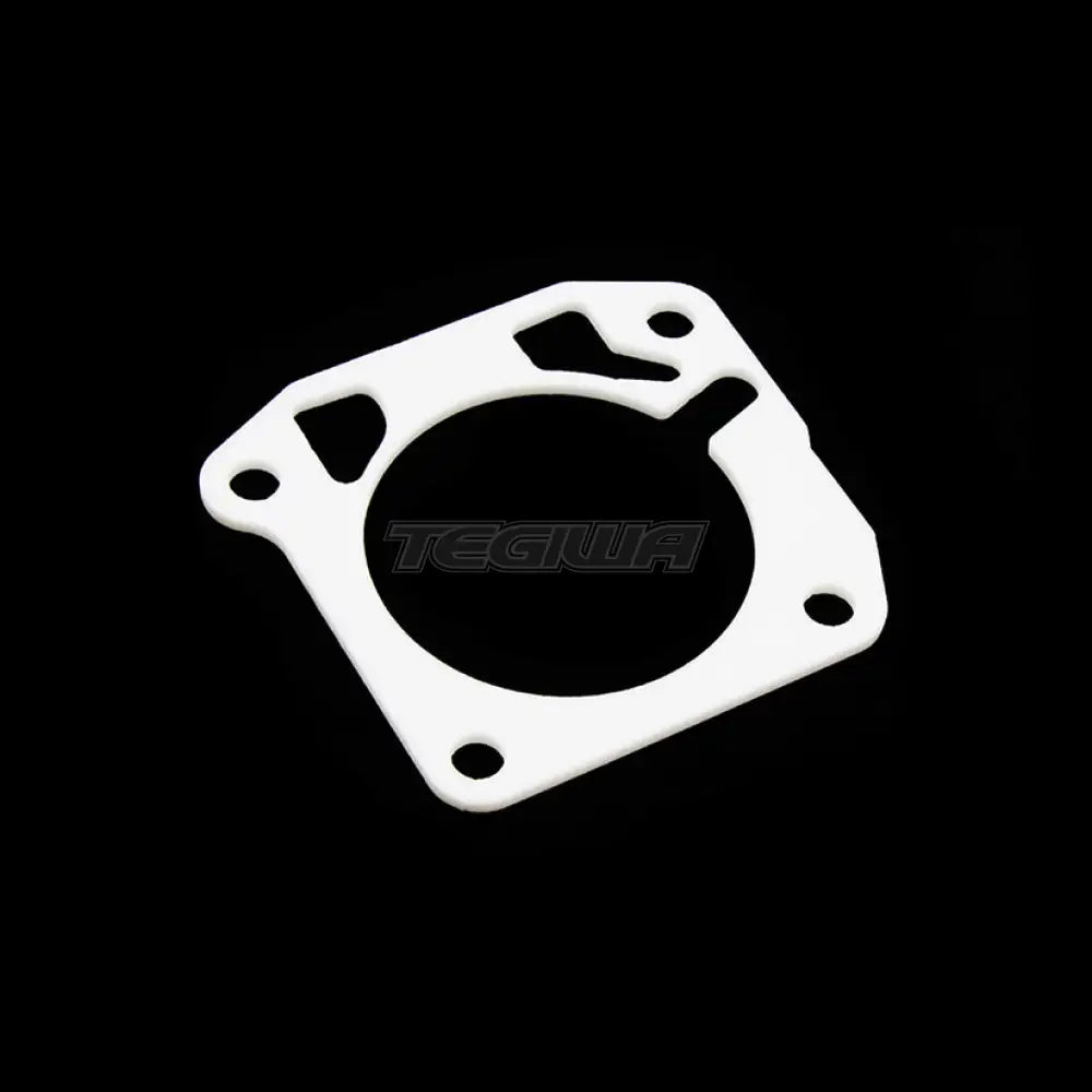 TEGIWA Thermal Gasket. This gasket helps reduce intake air temps by removing the direct connection of the intake manifold to the throttle body. By placing this thermal shield between the intake manifold and the throttle body, you will help reduce the amount of heat soak the throttle body normally absorbs from the inlet manifold resulting in an increase in power. Made from PTFE - the ultimate thermo-plastic and manufactured in the UK using the latest water-cutting technologly. This will fit all inlet manifolds, 70mm ported OEM, Skunk2 Pro Series etc (will not fit RBC flange). Suitable for 70MM throttle body such as Skunk2. Being plastic it can easily be ported to a bigger diameter using a die-grinder.
