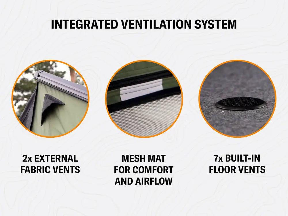 Ventilation: 2 vents in pod fabric + 7 base vents